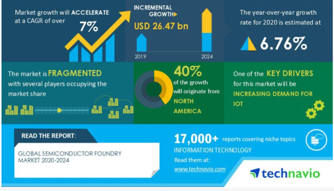 近日,跨国大型技术调查顾问公司TechNavio 预测了半导体晶圆代工在2020-2024年期间的市场发展。