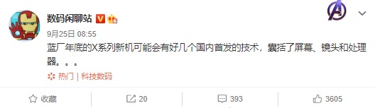 数码博主 @数码闲聊站 此前爆料表示,vivo 年底的 X 系列新机可能存在多个国内首发的技术,例如屏幕、镜头和芯片等方面。