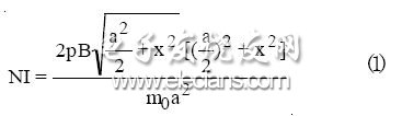 射频卡读写器采用电感耦合式天线,主要用于产生磁通量,而磁通量用于向射频卡提供电源并在读卡器与射频卡之间传输信息。当一个RFID系统正常工作时所需的磁感应强度B一定时,安培匝数NI由环形天线的边长a以及标签和读写器天线的距离x来共同决定。其关系式为: