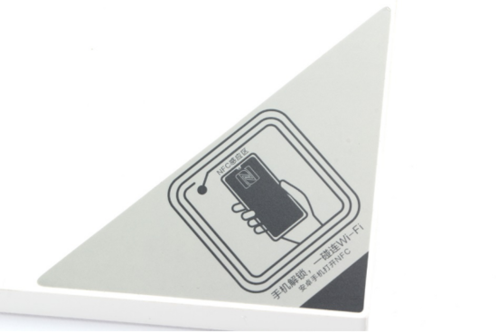 华为路由器AX3 Pro的顶壳正面右下角贴有NFC感应提示标签。