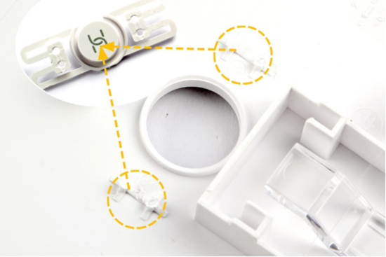 华为路由器AX3 Pro的HiLink智联按键通过四根塑料钉固定在正中间。