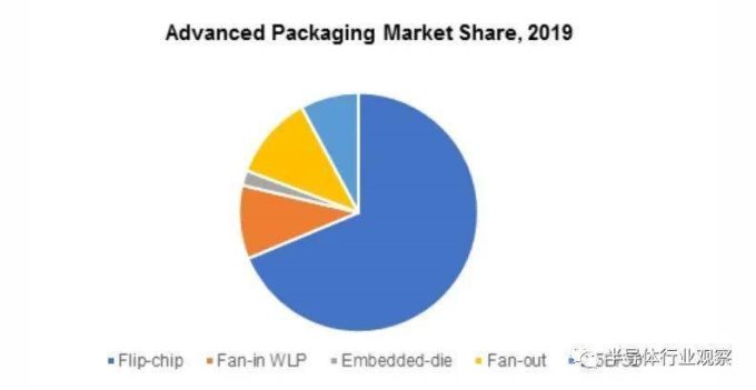 在类型上,先进包装市场分为2.5D/3D、扇出、嵌入模、, fan-in WLP、倒装芯片。其中,fan-in WLP的增长最为可观。2019年,该领域的市场份额超过10%。这种增长归因于智能手机制造商越来越多地采用fan-in WLP,以实现高密度和低外形因素芯片组。