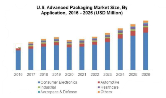 得益于医疗保健、汽车、消费电子、航空航天和国防等大量应用渠道的高产品采用,先进封装市场将在未来几年积累显著的收益。先进封装是为了提高器件的性能,同时压缩尺寸。如今多种技术类别相继出台,如SIP、3D-IC、2.5D和扇出级封装。