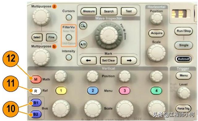 12.M。按此按钮可以管理数学波形,包括显示数据波形或删除所显示的数据波形。