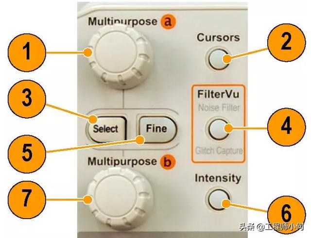 这些按钮和旋钮控制波形、光标和其他数据输入。