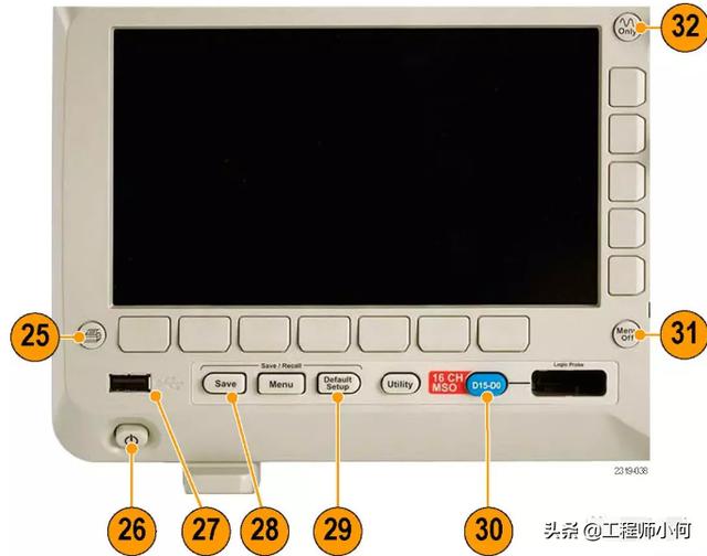 26.电源开关。按下可打开或关闭示波器电源。