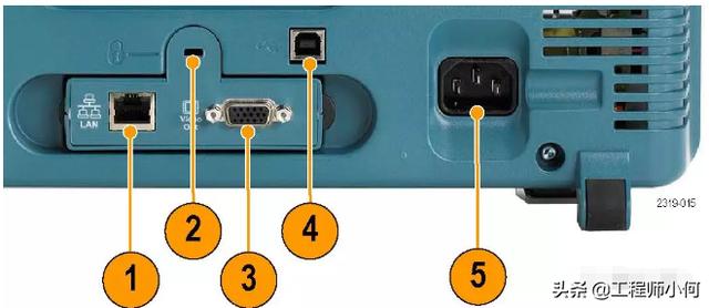 4. USB 2.0 设备端口。使用USB 2.0全速设备端口连接PictBridge 兼容打印机,或者通过USBTMC 协议对示波器进行直接PC 控制。