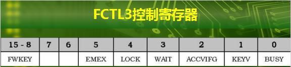 FLASH存储模块的所有操作都通过控制相关的控制寄存器来实现的。包括FCTL1、FCTL2、FCTL3三个控制寄存器,其中FCTL1主要包含对FLASH的编程和擦除操作的控制位;FCTL2主要定义进入时序发生器前的时钟源和分频系数;FCTL3保存FLASH存储模块的一些标志位。