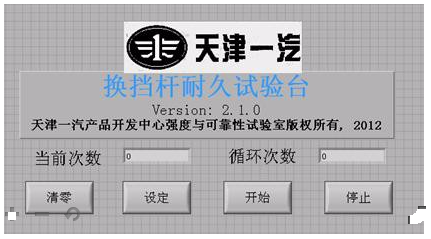 本文通过光电开关发出模拟电压信号,NI数据采集卡采集电压信号并输入到上位机,上位机中运行使用Labview软件编制的人机接口界面及数据处理程序,根据判断结果通过Modbus协议控制交流伺服电机实现往复动作,最后增加极限位置电机反转程序,解决电机运行过程中出现的极限位置控制策略失效的问题。实践证明这种搭建的试验台的技术路线及控制策略是可行的,同时这也是一种用较为通用方法,不仅能满足换挡杆耐久试验的要求,对其他零部件耐久试验台的开发也有参考意义。