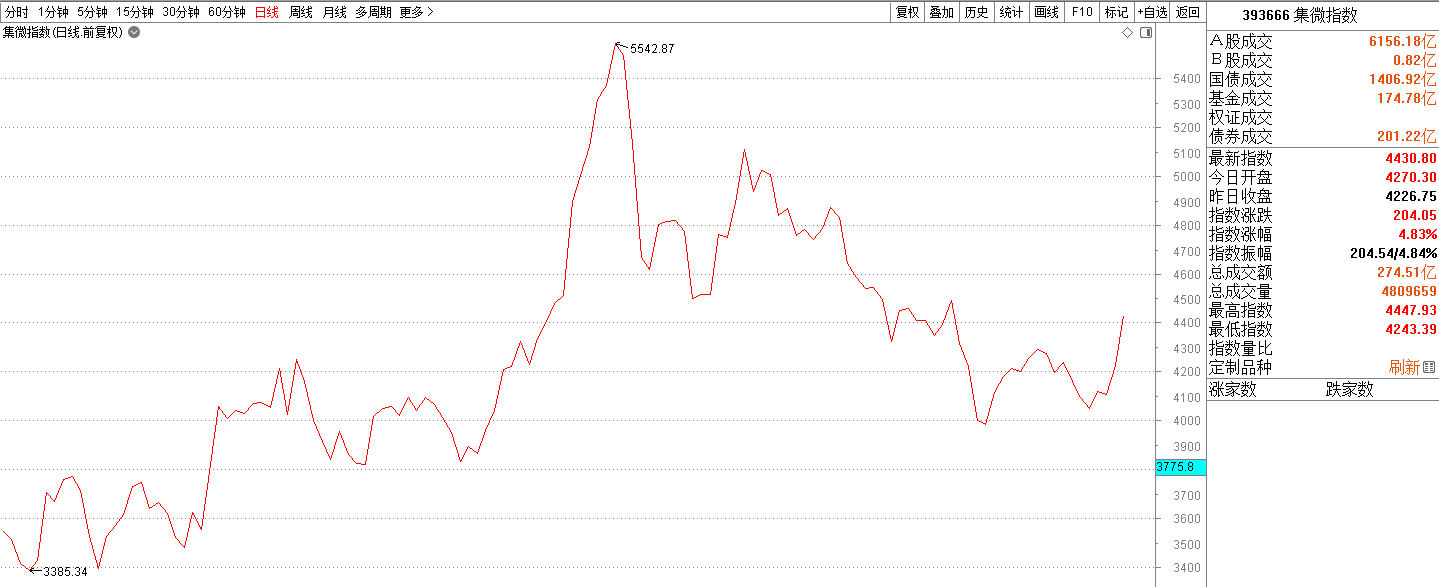 截至10月12日收盘,集微指数收盘点数为4430.80点,较前一交易日上涨204.05点,涨幅4.83%。(由于近期科创板有大量限售股解禁,所以集微网对集微指数进行了小幅调整,调整后的指数趋势与原指数趋势不变)