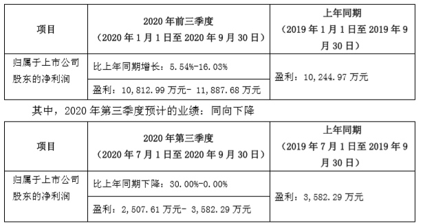 10月13日,明阳电路发布2020年前三季度业绩预告。公司前三季度归属于上市公司股东的净利润为10,812.99万元-11,887.68万元,同比增长5.54%-16.03%;第三季度归属于上市公司股东的净利润为2507.61万元-3582.29万元,同比下降30.00%-0.00%。