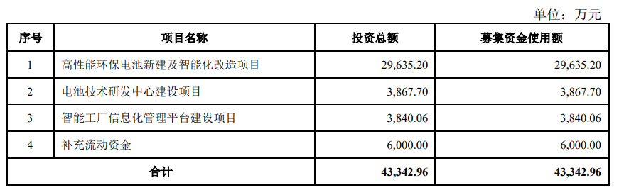 拟募资4.34亿元扩产电池等项目