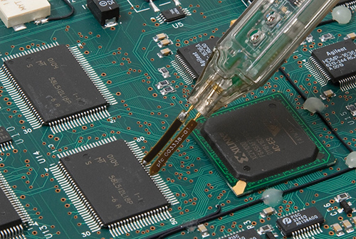 图 6:使用小型 IC 适配器的 ZD1000 差分探头。这些探头尖端一侧有绝缘,以防止与相邻 IC 引脚短路。它们还具有低电感电阻补偿,以减少电感峰值。(图片来源:Teledyne LeCroy)