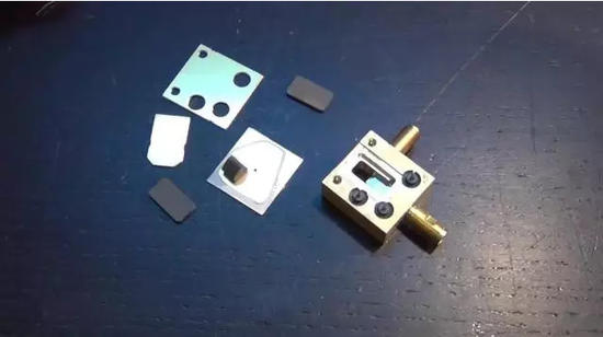光信号输入端下面还藏着一个 50GHz 的电信号输入端,直接输入到图片右侧同样的金属盒子里。