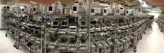 且不说在芯片生产中那些动辄数百万的设备。单看一张老化试验室的照片,用来给芯片供电的直流电源,全部是 Keysight 自己生产的高端电源 N6705B,每台电源的售价都在一万美元以上。而这张图片的试验室里,至少有超过 50 台 N6705B 在同时使用,仅仅是为了供电...太豪了。