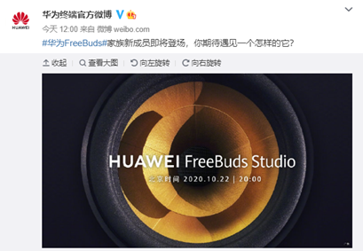 2020年10月14日 | 华为头戴式耳机, Freebuds Studio官宣了