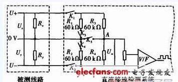 正负母线电压检测。正母线、负母线、地线经过“平衡-不平衡”检测电桥后,由电位器对检测点A的电压进行分压,得到便于采集的低压直流信号。正负母线相对于地的电压超过了人体的安全电压,为了减少处理器与检测电桥部分的连接,系统采用压频转换器对分压后的信号进行采集。由于采用了压频转换器,只需要一根信号线,一个光电耦合器件就能够实现母线电压的检测,提高了系统的可靠性和稳定性,简化了系统设计。经过分压后的低压直流信号由电压/频率变换器AD7740转换成频率随输入电压成线性关系的方波信号。该方波信号经过光耦隔离再送处理器,避免母线的高压对操作人员造成伤害。处理器对方波信号测频,并换算成检测点A对应的电压,最后根据3次测得的A点电压及网络结构计算出母线电压和母线绝缘电阻。