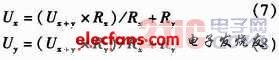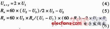 如图2所示,U+和U-为被测线路的母线供电电压,正常工作时两母线间的电压差Ux+y为440 V,且随蓄电池内阻变化。Rx,Ry分别为被测线路的正母线绝缘电阻和负母线绝缘电阻。正、负母线绝缘电阻反映的是64路的正、负支路的总体绝缘性能,等效于各个支路的正、负绝缘电阻的并联,正常时两母线绝缘电阻》20 kΩ。Ux和Uy为正负母线对地电压,大小随正负母线的绝缘电阻变化,但两母线电压差恒定为Ux+y。为了检测正负母线电压Ux,Uy,Rx,Ry,系统采用了“平衡-不平衡检测法”检测母线电压和母线绝缘电阻。