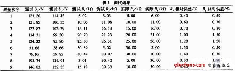 由1~5组可知,当绝缘电阻大时,测试相对误差略有增大,这是因为采样A/D的输入阻抗较小,因此当测试电阻较大时造成误差相对大些。另外,当负母线的绝缘电阻《30 kΩ、负母线绝缘电阻正常时,前者的测量效果差些。因为此时实际测得的电压U2和U3都较小,A/D采样的相对误差大一些,所以电阻的误差也大一些。不过远好于平衡桥法无法发现两点接地的情况,可以正却发现接地。绝缘检测的环境下,只要绝缘电阻》20 kΩ即认为绝缘良好,因此对于绝缘检测的应用环境,本系统能够比较精确的测试各路的绝缘电阻,完全满足应用环境的需要。