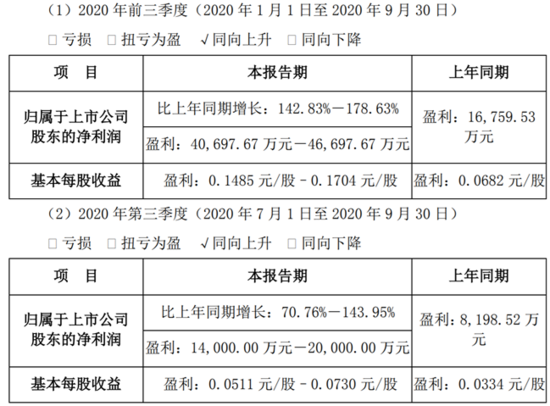 其中公司第三季度归属于上市公司股东的净利润1.4亿元至2亿元,同比增长70.76%至143.95%。
