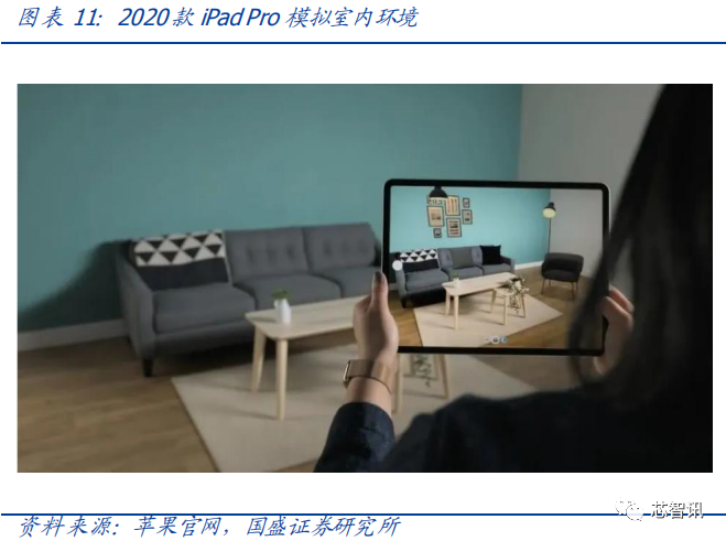 AR 室内设计。2020 款 iPad Pro 使用了 dToF LiDAR 技术,通过这一技术可以获得 3D 空间的深度信息,建立详细的室内环境空间数据,模拟出摆放了新家具后的情况。宜家的IKEA Place 应用,利用 AR 让家居产品的外观和在家中的摆放效果直接呈现在用户眼前。