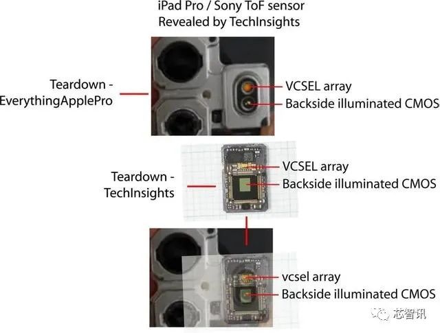▲TechInsights拆解的新款iPad Pro的“激光雷达扫描仪”内部的Sensor