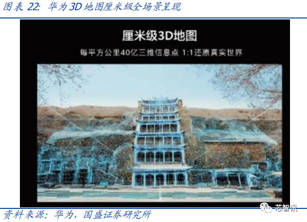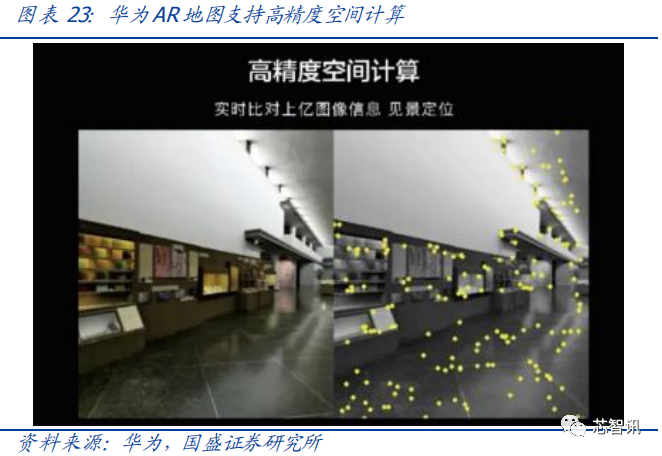 华为河图(Cyberverse)定义地球级 XR 应用(包括 VR、AR、MR 等扩展现实技术), 将 AR 应用拓展到更广阔的数字世界。华为河图(Cyberverse)被定义用来提供地球级的虚拟现实融合服务的数字平台,华为 AR 地图是其推出的第一个商业产品,主要功能包括 AR 实景导航、全息信息展示、虚实融合拍照及其他虚拟活动等。全场景空间计算能力是河图的核心,这一能力所需的宏观地图可以使用卫星定位,而室内及一些微观场所的建模定位则依赖智能手机的 3D Sensing 来完成。目前华为 P40 系列机型已经能够支持华为 AR 地图。