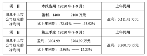 10月15日晚间,安利股份发布业绩预告。预计2020年前三季度归属于上市公司股东的净利润为2100万元至1400万元,同比下降58.92%至72.61%;预计第三季度归属于上市公司股东的净利润为3704.99万元至3004.99万元,比上年同期负8.96%至12.25%。