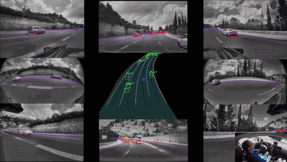 可视化只显示“事实”——目前被摄像机稳定探测到的事件。驾驶政策有一个“常识”层,包括“事情不会凭空消失”这样的逻辑。“这些非视觉指南是汽车决策过程的一部分。