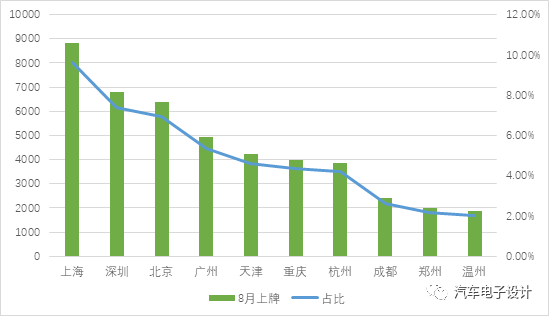 图 1 8 月上牌占比前几个大城市占 30%