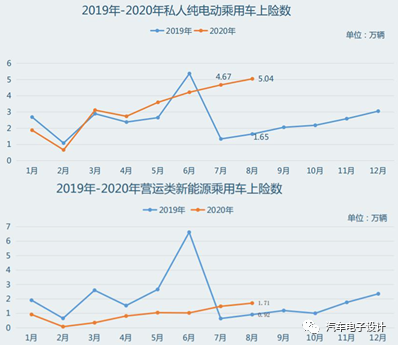 今年突出的特点是新能源乘用车产量和上牌数据的同步性,8 月国产新能源乘用车上险数为 9.2 万辆比 8 月的整体产量少 3400 台,预计 9 月份在 11-12 万左右,也是牢牢跟着上牌数据在走。2020 年 1-8 月,新能源车累计上牌为 45.1 万辆,今年的主要特点还是从去年的 B 端市场较大开始转向,以上个月为例出租租赁市场上险占比 18.5%,个人用户占比达 67.9%,单位和其他用户占比 13.6%,这个是之前从来没有的。
