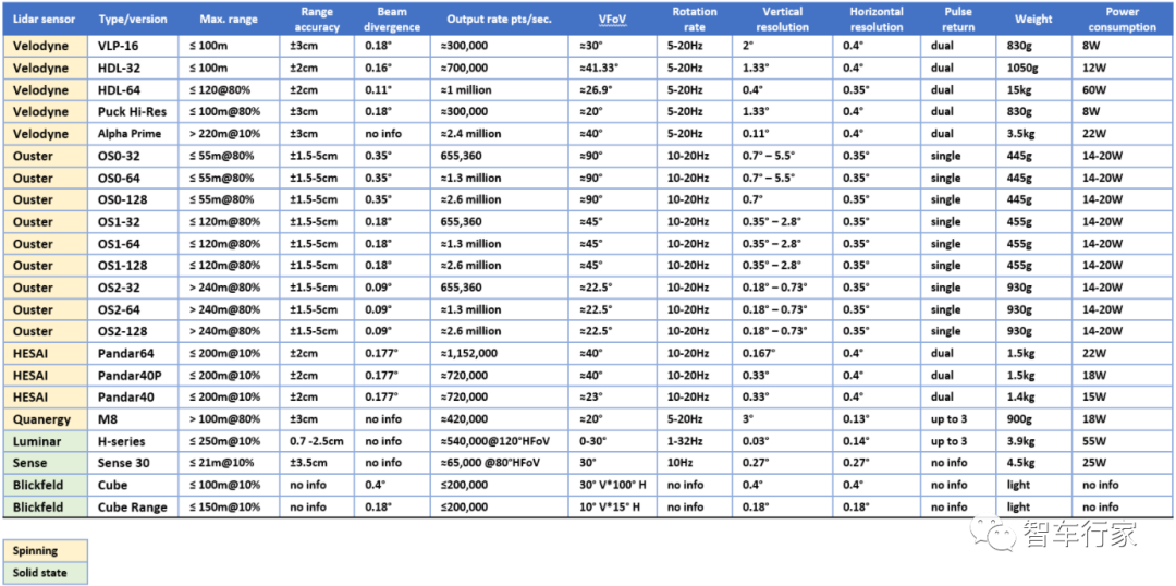 表 1:制造商提供的激光雷达传感器的规格。(点击可以查看高清大图)