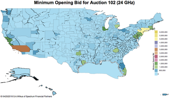 去年5月,FCC的24GHz频段的拍卖总额超过了7亿美元(图源:Stephen Wilkus/Spectrum Financial Partners)