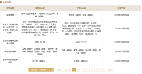 10月13日,深圳市中兴微电子技术有限公司投资人变更,国家集成电路产业投资基金股份有限公司退出,退出前持股24%,新增中兴通讯子公司深圳市仁兴科技有限责任公司,持股24%。