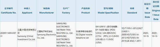 IT之家10月16日消息 一款型号为 SM-G9910 的三星 5G 数字移动电话机现已通过 3C 认证,配备 25W 充电器。