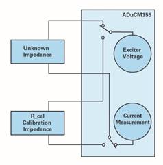 大多数用于所述测量的传感器可以通过ADuCM355输入直接操作。例如,用于恒电势器测量,如血糖测量。与此相对,实现更准确的测量(例如电导率和pH值)需要用到扩展信号链,所以也需要采用外部芯片,例如LTC6078。它增加了输入阻抗,以适应传感器的高输出阻抗,从而获得准确的读数。除了前面描述的测量以外,还需要测量温度,以补偿传感器的波动。扩展测量原理如图5所示。借助较大的信号链,ADuCM355可以读取电压和电流值。在所示的电路中,可以检测到范围小于100 Ω至10 MΩ的阻抗。较大的测量范围可以覆盖医疗领域所需的整个阻抗图谱。对于电导率测量,高动态范围特别重要,如此可以测量多种浓度。
