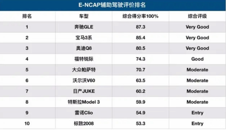 目前已对首批10款车型进行了测试,其中豪华品牌BBA相应车型均获得最高评级,而一向以自动辅助驾驶著称的特斯拉反而排名靠后。