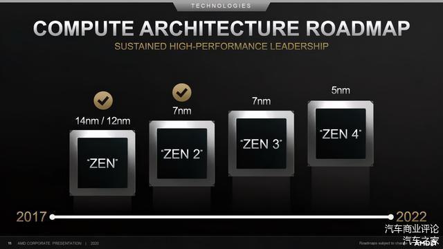 2020年10月9日,AMD正式揭晓了搭配台积电7nm工艺全新的Zen 3 CPU架构,以及最新一代锐龙5000系列桌面处理器,同时展示了计划于2022年前推出的基于5nm工艺Zen 4架构CPU。