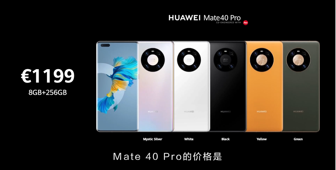 2020年10月23日 | 华为Mate40系列售价899欧元起