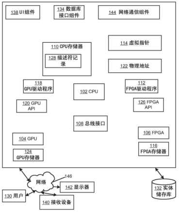 如上图,为用于GPU和FPGA组件之间直接通信的系统框图,系统100包括存储计算机指令的存储器、中央处理单元(CPU)102、图形处理单元(GPU)104和现场可编程门阵列(FPGA)106,这些部件通过总线进行连接,传输数据包括经由PCIe交换机在GPU和FPGA之间直接传输数据。