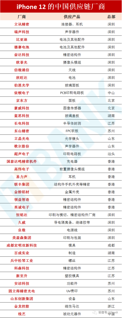 iPhone 12 的中国供应商都有哪些