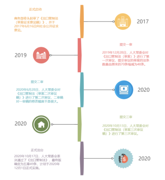 自2017年商务部公布《出口管制法(征求意见稿)》以来,关于中国如何制订符合自己国情的出口管制法律体系就引发外界的热议。由于中美贸易战的因素,中国出口管制法的立法进程一直备受关注。终于,在经过10个月内的三次审议后,中国十三届全国人大常委会第二十二次会议于10月17日表决通过了“出口管制法”,将于今年12月1日起正式实施,这意味着中国出口管制领域有了第一部专门法律。