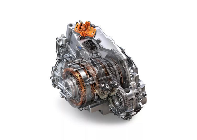 但是,双模甚至多模系统需要更为高级的动力分配结构,这也就是我们在通用Voltec上看到的、大名鼎鼎的Power Split动力分流系统。这套系统最大的特点在于,在变速箱内加入了两组行星齿轮、两个驱动电机,以离合器分配发动机与两个电机在不同工况下的工作组合。比如高动力需求时,大小功率的两个电机都能参与驱动;动力需求没那么高的时候,一个电机负责驱动、一个电机负责调整转速,以保证驾驶质感最优化。