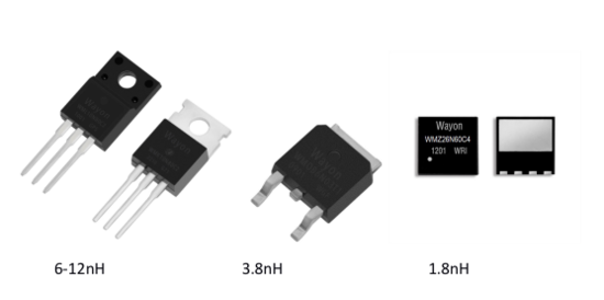 相比传统TO系列直插和SMD器件,PDFN 无引脚器件引脚寄生电感非常小。此特征可以显著提高器件的开关速度。可以通过LTspice软件仿真验证。下图使用并联器件中模拟不同的寄生电感来对比器件开通和关断速度。