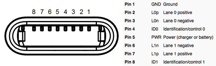 目前已经广泛流行使用的 USB-C 插头则有单面 12 个引脚,正反面共 24 个引脚设计,而且是正反面都同时可用的,即便排除掉用于兼容 USB 2.0 的 4 个引脚,依然大大领先 Lightning。