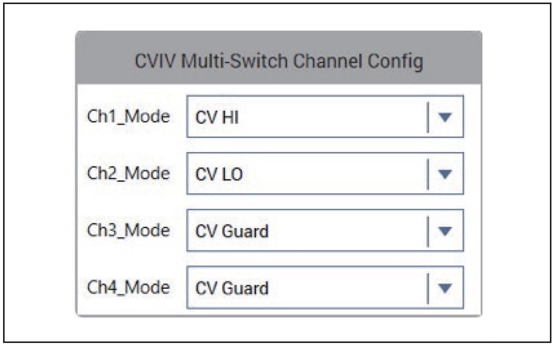 Clarius软件允许用户自动改变4200A-CVIV的输出,从而可以保护器件的任意端子。图11显示了Clarius中的CVIV多通道开关ChannelConfig设置。