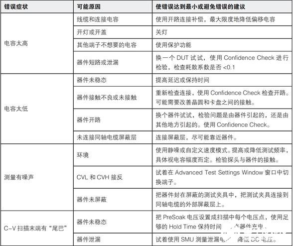 表1.C-V测量排障表
