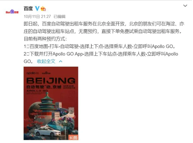 两周前,百度无人驾驶出租车服务Robotaxi正式在北京开放运营。此次开放的区域大约700公里,覆盖了海淀、亦庄等15个站点的测试区里,用户可以无需预约,直接下单试乘。