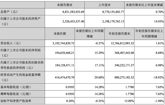 公告还披露,该公司前三季度实现营收为127.69亿元,同比增长1.81%;归属于上市公司股东的净利润为3.68亿元,同比增长8.68%。