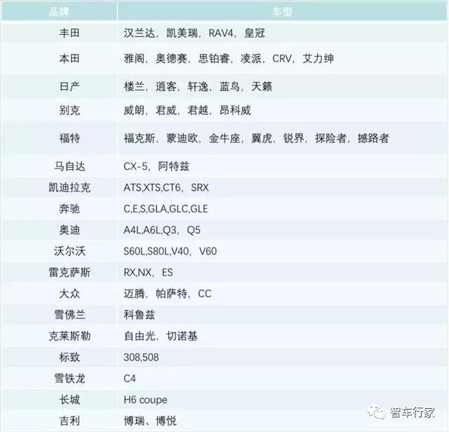 在国内的新车型中,据英飞凌统计,以下车型已经装配了 BSD 功能。